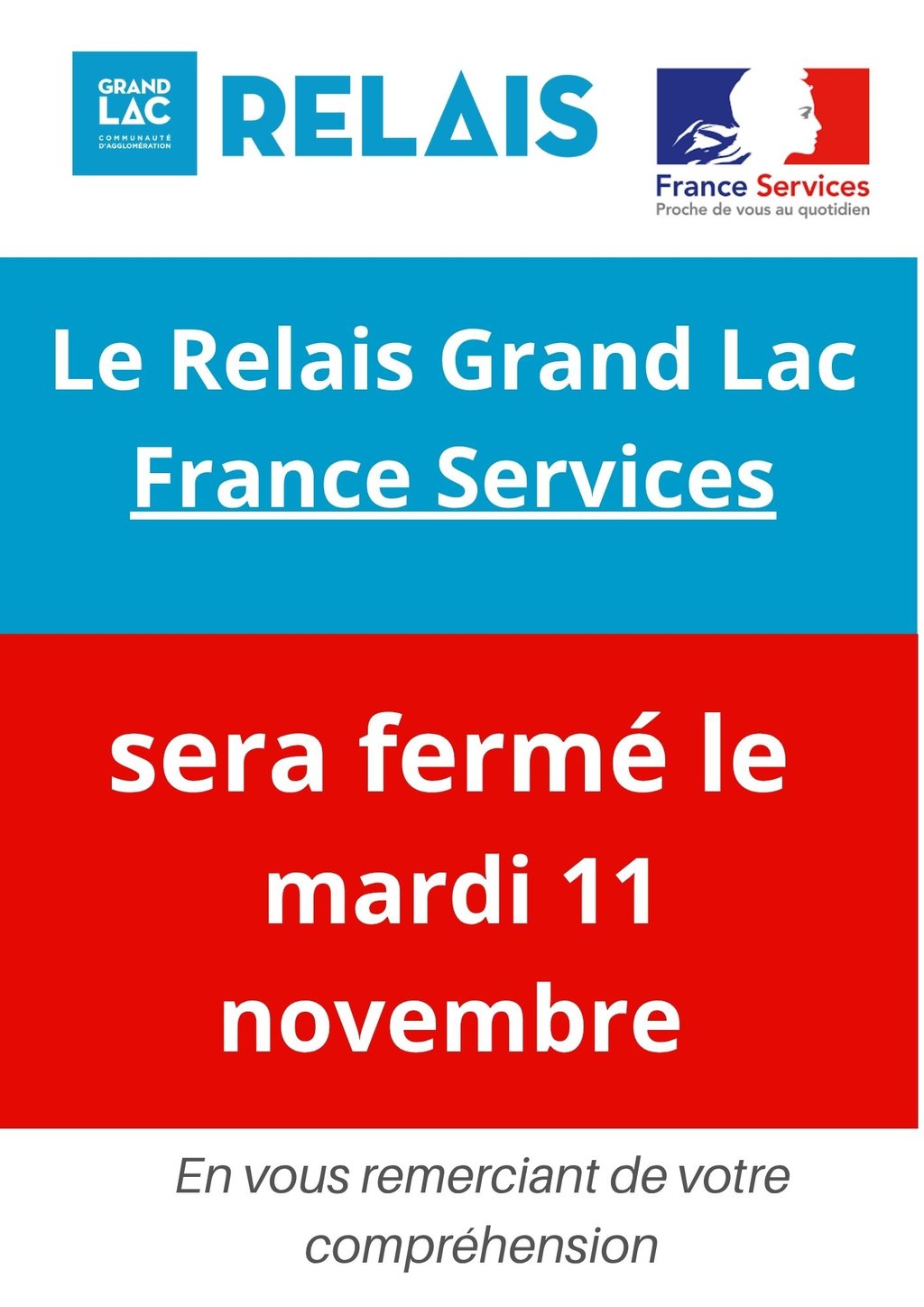Le relais Grand lac France Services sera fermée le mardi 11 novembre